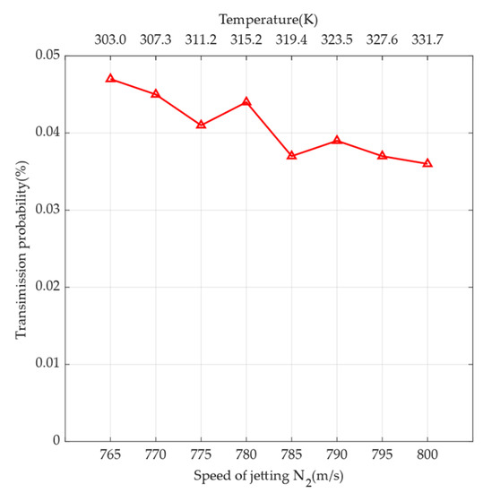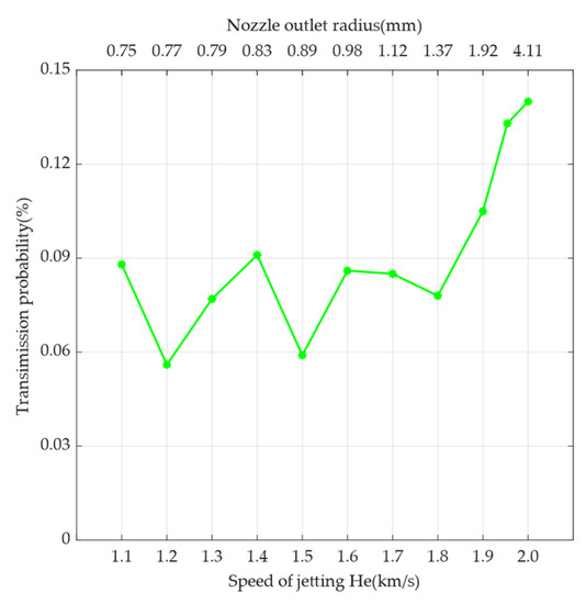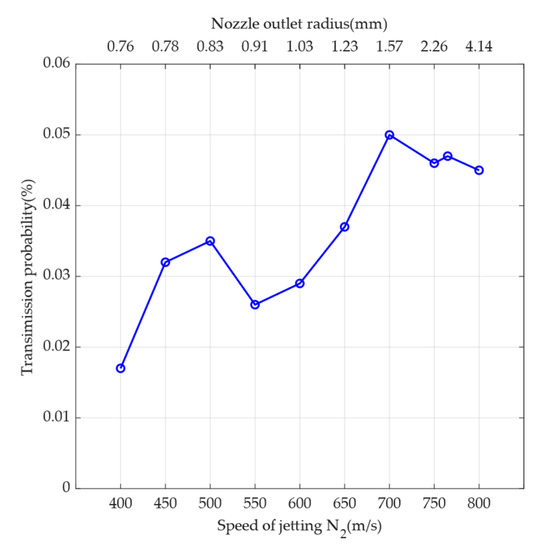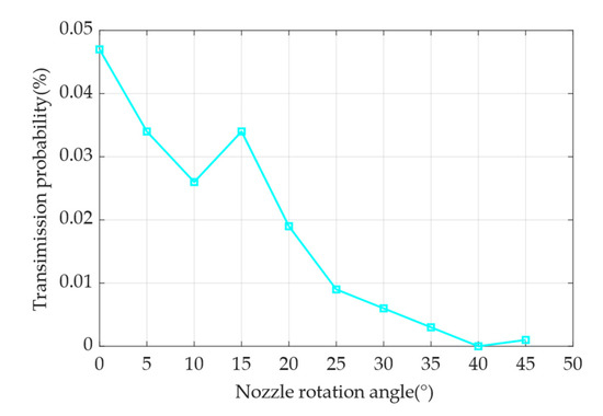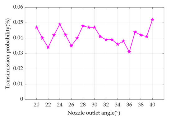 - According to the simulation, the transmission probability can be reduced by increasing the cross-sectional area of the de Laval nozzle outlet or increasing the gas temperature for attitude control within the allowable range of the project. Increasing the nozzle’s rotation angle, the outlet angle within 36°, and the center height within 250 mm can decrease the transmission probability;