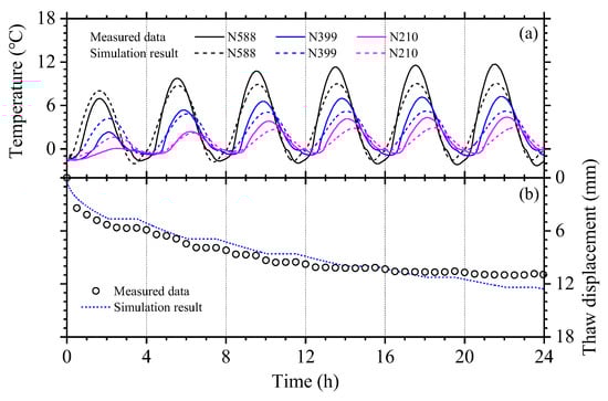 - Through the comparison between the simulation results (temperatures and vertical deformation of soil specimen) and that of the experiments for one-dimensional thaw consolidation of silty clay, the sequential thermo-mechanical coupling method is proved to be reliable for the prediction of the thaw settlement and consolidation of degrading permafrost under the periodic boundary condition.