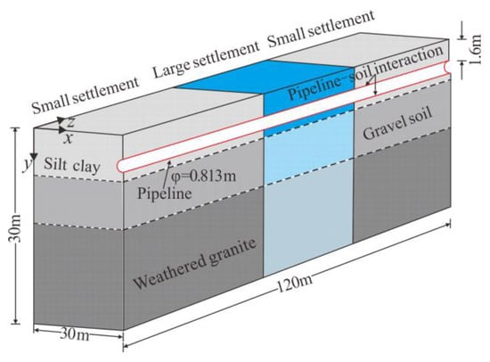 - Yu, C.; Han, C.J.; Xie, R.; Wang, L. Mechanical behavior analysis of buried pipeline under stratum settlement caused by underground mining. Int. J. Pres. Ves. Pip. 2020, 188, 104212. [Google Scholar] [CrossRef]