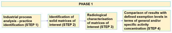 Scheme of Phase 1 of the general methodology to identify the most critical exposure scenarios in NORM involving industrial process.