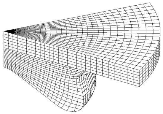 The multidimensional engine simulations were performed by KIVA-CHEMKIN code [51]. As shown in Figure 12, a 51.4286° computational grid generated using the preprocessor of the KIVA was used to carry out the simulations. The combustion chemistry of diesel was modeled with the n-heptane and toluene submechanism [28], and the physical properties of diesel were modeled by n-tetradecane. For the DMF fuel, its own physical properties and chemistry reaction mechanism were used. The KH-RT model was adopted to model the fuel injection and spray droplet breakup. The turbulent flow was simulated by the RNG k-ε model. A reduced NOx mechanism derived from [52] was coupled with the proposed mechanism to model NOx formation. Soot emissions were predicted using an improved multistep soot model [28].