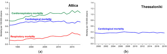 Mortality in Greece: (a) Athens and (b) Thessaloniki.