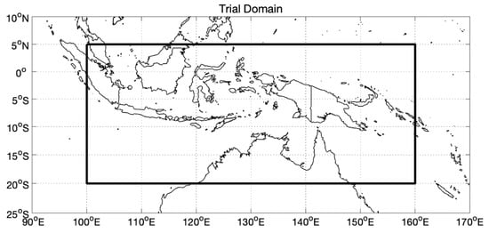 Following development of ALPHA, the Australian Bureau of Meteorology (hereafter referred to as the Bureau) collaborated with NCAR, FAA, and Australian-based airlines to trial ALPHA for an area across Indonesia, Papua New Guinea (PNG), and northern Australia. The application was adapted to ingest data from the Bureau’s Australian Community Climate and Earth Simulation System (ACCESS) model [] and the Japan Meteorological Agency (JMA) Himawari-8 (H8) geostationary meteorological satellite []. Available radar data coverage across the trial domain is very limited; thus, it is not used.