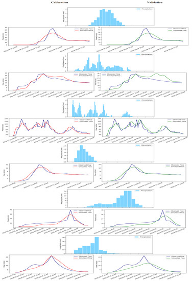 4.4. Hydrological Calibration and Validation