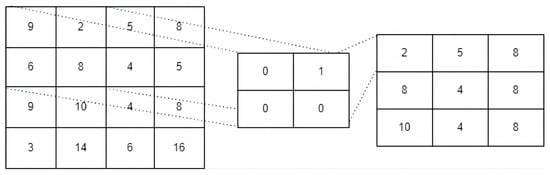 The pooling layer is used to optimize the output of the convolutional layer, reduce the feature dimensions and improve the calculation speed. The pooled data have certain translation and rotation invariance, as shown in Figure 4.