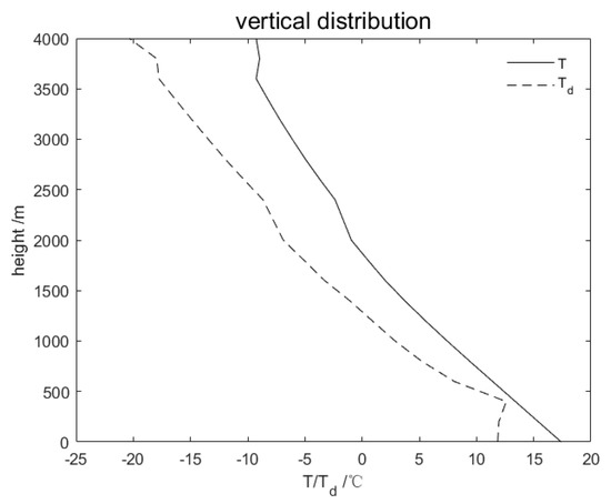 The domain was 10 km in the radial direction and 4 km in the vertical direction. The grid size was 200 m. The dynamic time step was 5 s, and the total duration was set to 60 min. The outputs are from the 10th minute, and the interval was two minutes. The sounding profile was obtained from the previous literature (Figure 1) [27]. The temperature perturbation was set at 2 °C.