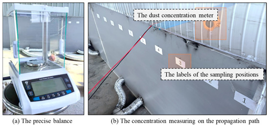 After sorting the material into various particle sizes, it was weighed using a precise balance and placed into the experimental setup. The coal dust concentration along the propagation path was measured using the diffusion module to establish the corresponding relationship between the input mass and the coal dust concentration.