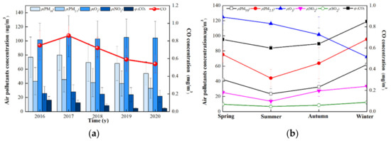 3.2. Interannual and Seasonal Characteristics of Air Pollutant Concentrations
