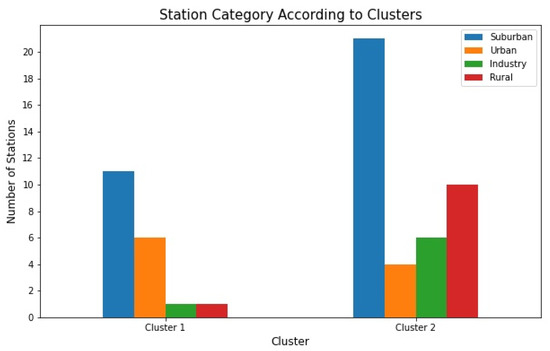 Moreover, the number of stations based on categories according to the clusters is shown in Figure 5.
