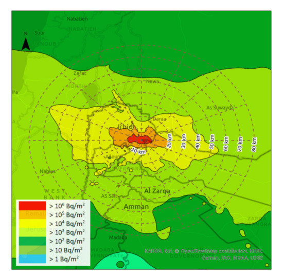 Radiation exposure is a major factor in the management of nuclear emergencies. In terms of accuracy and reliability, actual measurements are the optimal strategy for obtaining information concerning the dose received by individuals. However, in practice, obtaining measurements from all individuals affected by nuclear accidents over the entire period of exposure is a major challenge [21]. Therefore, a dose assessment model has been applied to estimate the radiological exposure of the public to a nuclear accident [22]. Radionuclides released to the environment is a potential risk to humans and the environment; therefore, major efforts have been concentrated on developing an internationally acceptable system [23,24,25].