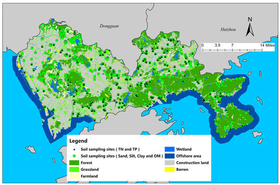 Ecosystem classification map and distribution of soil sampling sites in Shenzhen.