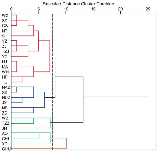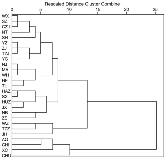 Hierarchical cluster analysis in the YRD region based on the Pearson correlation coefficients at the inter-city PM levels.