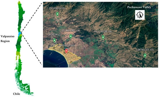 Sampling sites area in the Puchuncaví Valley.