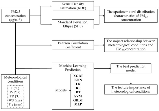 However, there are still some shortcomings in the current research on predicting the impact of meteorological conditions on PM2.5 concentration based on machine learning methods. First, most studies focus on a single machine learning method, with little comparison and analysis of the performance and applicability of different methods [32,38]. Second, existing research is mostly concentrated in specific areas and time ranges [39,40], lacking comparative analysis from the perspective of urban agglomerations [41].