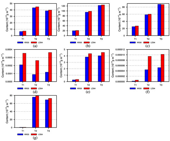 Four terms—CLcr, ML, VDrv, and CLri—contribute the most, ACR contributes a bit less (Figure 8a), and FR and RM contribute the least. Moreover, as the ACR in the LD04 simulation strengthens, more cloud droplets convert to raindrops; CLcr, ML, FR, CLri, and RM strengthen to different degrees; VDrv also strengthens in the T1 and T2 stages. Overall, the total budget content in the LD04 simulation is larger than that in KK00 (Figure 9g), which increases the raindrop content in LD04 relative to that in KK00.
