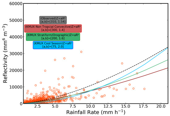 (‘standard’ NEXRAD relation); stratiform/orographic