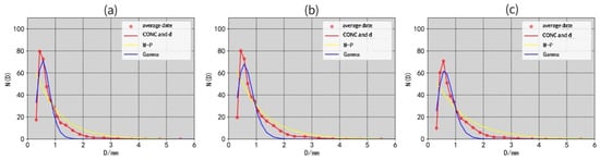 It can be seen from previous studies that the M-P distribution formula is simple and easy to calculate. Still, when describing the small-particle-size and large-particle-size regions, there is an inevitable error between the actual observation data. To illustrate the raindrop size distribution more accurately, Ulbrich [] proposed a method based on the M-P distribution to regard the raindrop size distribution as the GAMMA distribution. This method can correct the distribution pattern in the regions with small particle size or large particle size. At this time, the raindrop spectrum description function changes from the original two-parameter exponential function to the three-parameter function form. The formula is as follows: