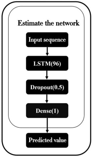 The data are first entered into the LSTM layer for temporal feature extraction, and then the dropout layer is used to increase the network’s generalization ability. Finally, the predicted value is output in the BP layer of a single neuron.