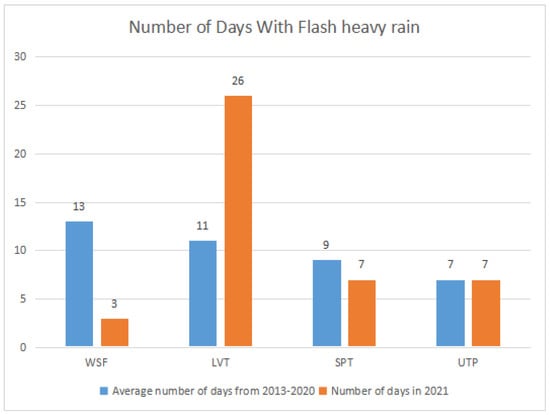 The 2021 subjective classified intense rainfall events versus those of the 2013–2020 average.