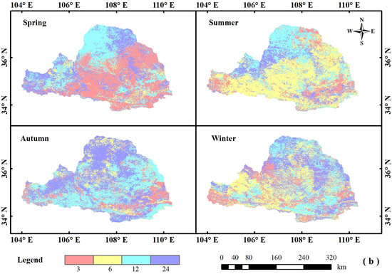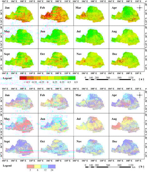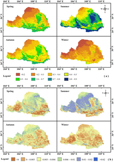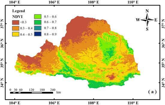- Wei, Z.; Wan, X. Spatial and Temporal Characteristics of NDVI in the Weihe River Basin and Its Correlation with Terrestrial Water Storage. Remote Sens. 2022, 14, 5532. [Google Scholar] [CrossRef]