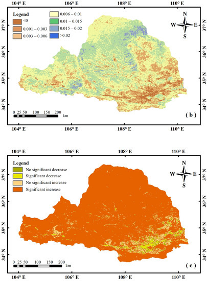 - Wang, L.X.; Yu, D.Y.; Liu, Z.; Zhang, S.C.; Yang, Y. Study on Tempo-spatial Variations of NDVI and Climatic Factors and Their Correlation in the Weihe Watershed. J. Soil Water Conserv. 2019, 26, 249–254. [Google Scholar]