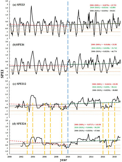 - Li, C.; Leal Filho, W.; Yin, J.; Hu, R.; Wang, J.; Yang, C.; Yin, S.; Bao, Y.; Ayal, D.Y. Assessing vegetation response to multi-time-scale drought across inner Mongolia plateau. J. Clean Prod. 2018, 179, 210–216. [Google Scholar] [CrossRef]