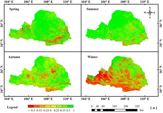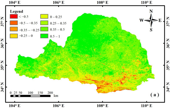 3.1. Spatial and Temporal Evolution Characteristics of NDVI in the Weihe River Basin