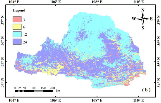 - Jiang, C.; Wang, F.; Mu, X.M.; Li, R. Analysis of spatial and temporal variation of vegetation cover in Wei River Basin under background of converting farmland into forest or grassland. Res. Agr. Mod. 2012, 33, 470–474. [Google Scholar]
