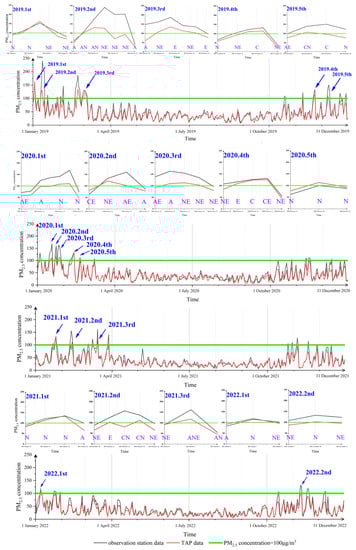 - Wang, X.; Zhang, R. Effects of Atmospheric Circulations on the Interannual Variation in PM2.5 Concentrations over the Beijing-Tianjin-Hebei Region in 2013-2018. Atmos. Chem. Phys. 2020, 20, 7667–7682. [Google Scholar] [CrossRef]