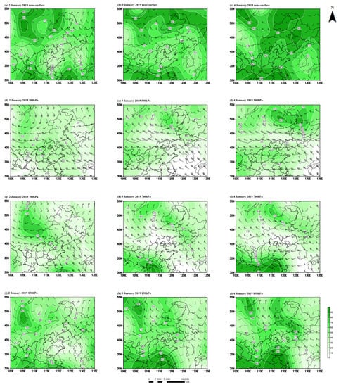 3.2. Variation of PM2.5 Concentration and Atmospheric Circulation in the Pollution Period