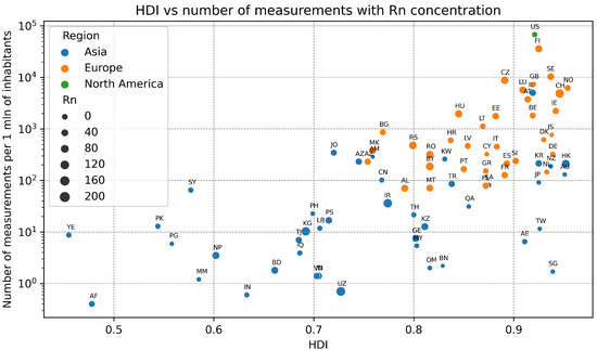 It should be noted that a literature survey conducted in 2022 showed that in India, where a radon program has been initiated, as previously mentioned, researchers focused on long-term indoor measurements of radon, thoron, and progeny to assess the levels of those radionuclides and calculate inhalation dose [74,80]. The same is being planned for Thailand [81] and Korea [82].