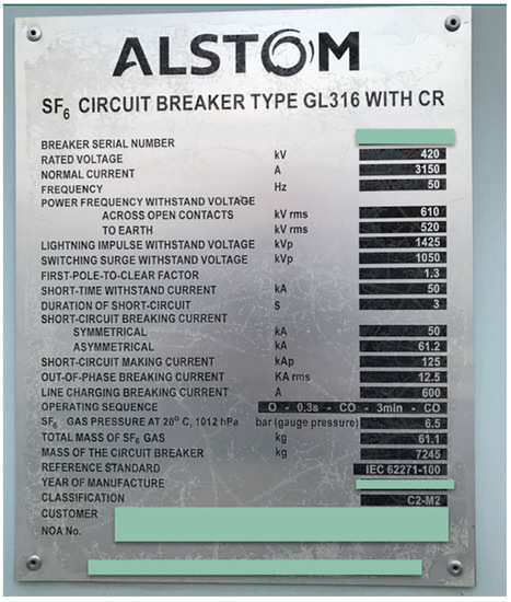 Sample of SF6 circuit breaker nameplate used in Malaysia.