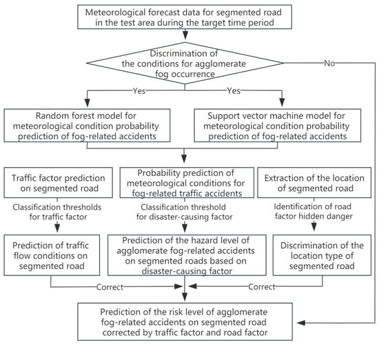 For severe weather-related traffic accidents, the key impact factors including meteorological conditions, road hidden dangers and traffic flow conditions are integrated to establish the risk assessment procedure and risk level prediction model for expressway agglomerate fog-related accidents, which consists of three core steps—discrimination of the conditions for agglomerate fog occurrence, risk level initial prediction of agglomerate fog-related accidents based on disaster-causing factors and risk level correction of agglomerate fog-related accidents based on traffic and road factors.