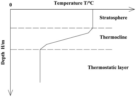 The empirical methods of water temperature calculation can be divided into two types, which are the calculation method based on the boundary temperature of water and the method based on the vertical average temperature of water. The vertical temperature distribution of water is shown as Figure 3. Zhang calculated the vertical water temperature each month, according to the water temperature distribution of reservoir surface and bottom [].