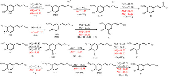 3.2. Subsequent Reactions of IM2, IM7, and IM8