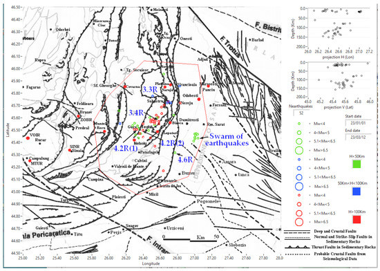 - Radulian, M.; Popescu, E.; Bala, A.; Utale, A. Catalog of fault plane solutions for the earthquakes occurred on the Romanian territory. Rom Rep. Phys. 2002, 47, 663–686. Available online: http://scholar.google.com/scholar?hl=en&btnG=Search&q=intitle:CATALOG+OF+FAULT+PLANE+SOLUTIONS+FOR+THE+EARTHQUAKES+OCCURRED+ON+THE+ROMANIAN+TERRITORY#0 (accessed on 21 May 2023).