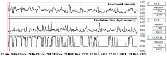 Correlation between b from the Gutenberg–Richter law for Vrancea crustal and deep seismicity.