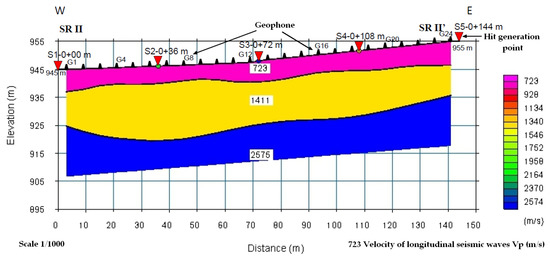 SEISMIC REFRACTION SECTION S.R. II-II in Bisoca station BISRAERd (project of the Romanian National Authority for Scientific Research, Programe STAR, project 84/2013, made by Getotec Consulting SRL).