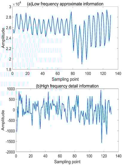 DWT decomposition of visibility time series. (a) Low-frequency approximate information; (b) high-frequency detail information.