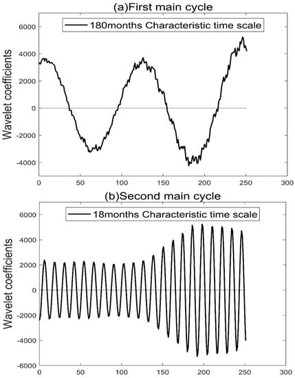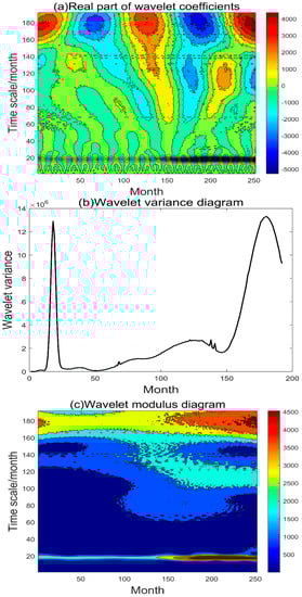 Wavelet transform is a tool for studying multi-scale frequency characteristics in time series. Decomposing time series into different scales can reveal the main variation patterns and frequency of change and how these patterns and frequencies change over time [].