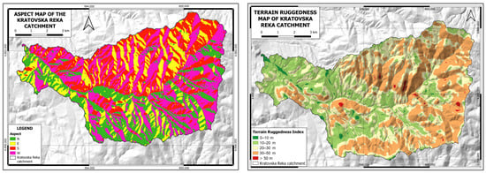 Terrain relief is in the range of 34.3–243.1 m/km2, with a mean value of 105.4 m/km2. Terrain with an elevation difference of between 150–300 m/km2 covers 8.3% of the catchment. This means that, the higher the topographic ruggedness index, the greater the danger of geohazards (erosion, landslides) (Figure 3).