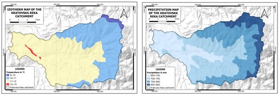Isotherm map (left), and precipitation map (right) of the study area.