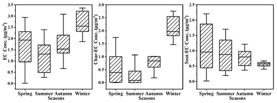 Seasonal distribution of EC, Char-EC, and Soot-EC in PM2.5 of Nanchang.