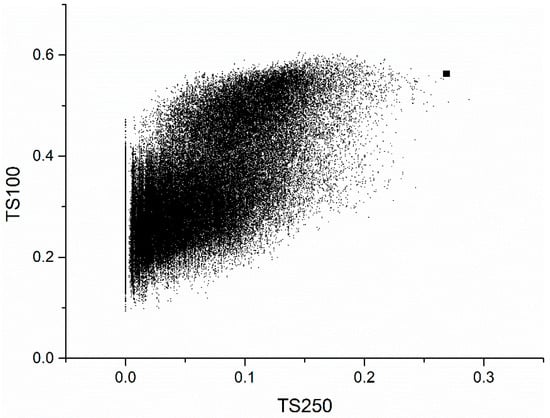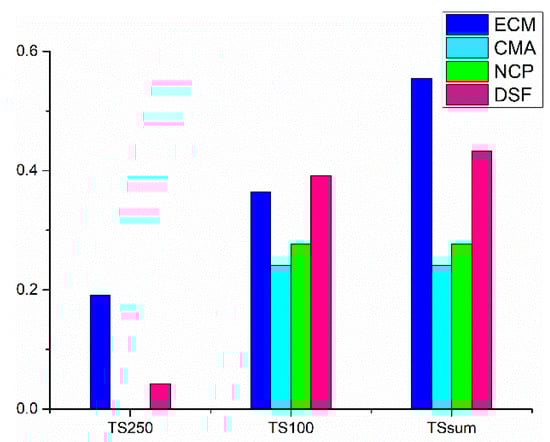 - Conduct forecast experiments. After conducting simulation experiments for 27 training samples, the common forecast schemes of the 27 TCs were screened and the average TS of each common scheme was calculated for two different thresholds of accumulated precipitation (≥250 mm and ≥100 mm). The scheme with the maximum sum (TSsum) of the TS for accumulated precipitation ≥ 250 mm (TS250) and that for accumulated precipitation ≥ 100 mm (TS100) was selected as the best forecast scheme of the DSEAF_LTP model (Figure 2), and was applied to forecast the TC precipitation of 10 independent samples.