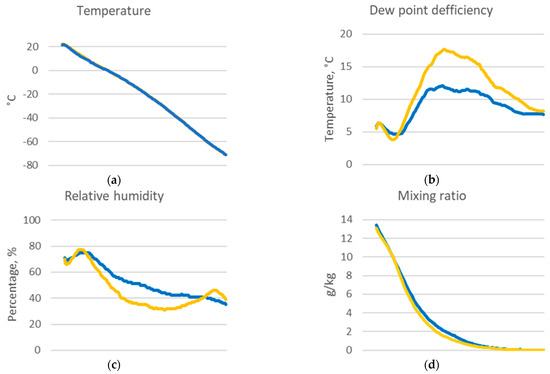 Upper air sounding data from the database of the University of Wyoming (http://weather.uwyo.edu/, accessed on 15 June 2022) are used in this study. There are three sounding stations within a radius of 500 km from the weather radar located at the center of the studied area. The closest one is SBBR Brasilia-Aeroporto (WMO Station Identifier 83378; 15.86º S, 47.93º W, and elevation 1061.0 m), located 320 km west of the studied area center. It is assumed that this station’s data are representative for the study area and can adequately reflect the atmosphere state in the cloud formation and growth layer. In this analysis, we processed and summarized data from 22,379 sondes from 1974 to 2022 (49 years).