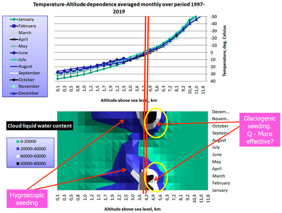 Small changes in monthly averaged temperatures over 3–5 km level in ranges of 2–3 degrees suggests that the phase composition of clouds throughout the year will be approximately the same with some variation, which to some extent simplifies the choice of cloud seeding strategy.