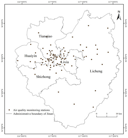 2 in Jinan during June was mainly in the northeastern part of the city, and the low concentration area was primarily located in the southern low hills with high vegetation cover, thus showing a decreasing trend from north to south. The NO