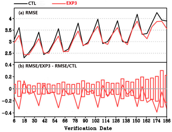 - EXP2 experiment by using GRAPES_GFS with modified parameterizations from EXP1, and land surface roughness lengths for the exchanges in heat and moisture, salinity-related ocean surface vapor pressure, where the 24 h forecasts started from each day during 1 March–15 April 2019;