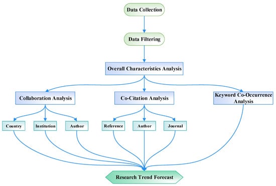 In this study, we applied a combination of bibliometric techniques to investigate the field of satellite ozone (Figure 1). We utilized collaboration analysis to investigate potential cooperative relationships, co-citation analysis to uncover the underlying knowledge structure, and keyword co-occurrence analysis to track the development of research trends and identify current hot topics. Additionally, based on our analysis findings, we put forward suggestions for future research directions in the domain of satellite ozone.