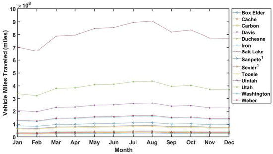 - Utah Department of Transportation. Traffic Statistics. 2023. Available online: https://udot.utah.gov/connect/business/traffic-data/traffic-statistics/ (accessed on 24 February 2023).
